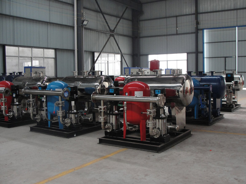 智能化无负压供水成套设备,对电网冲击小,保护功能完善。智能PLC控制多台水泵循环软启动方式,设备控制系统具有短路、过流、过压、过载、欠压、缺相、过热等多种保护功能,提高了工作效率,延长使用寿命。控制系统采用了人机界面触摸面板操作,设定参数灵活方便。控制柜操作面板设有人机界面显示(触摸显示屏)能够显示系统时间、系统压力、设定压力,各泵工作状态,可查阅各种故障原因及处理方法。采用稳压罐稳压贮能与变频调速技术相结合,自动调速双重节能。在非常状态故障逢检保护报警,语言显示功能。占地面积小,优化的机电一体化设计更能节省安装费用。